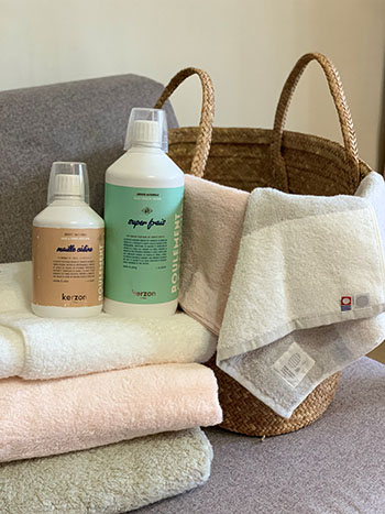 雖然會使用伊織原創鹼離子環保洗劑,但我非常喜歡研究市面上還有哪些天然親膚的洗劑,最近有機會體驗到來自法國的香氛洗衣精kerzon,好奇的我,一拿到體驗瓶後就立刻試用了,實際使用後真的很推薦給與我同樣寶貝毛巾的朋友,來自法國的kerzon,遵循南法普羅旺斯的傳統製皂工法,跟伊織一樣講究。Kerzon的洗衣精用有機椰子油+橄欖油為皂基,能快速溶解並輕易將分解髒汙,清洗上也不易殘留,由於是植物油為皂基能滋潤纖維,洗後自然蓬鬆柔軟。