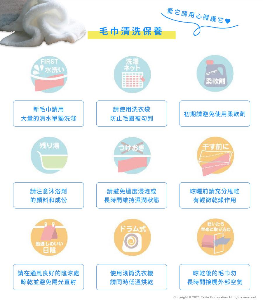 *特殊紗線為UNTWISH®, 採用100%「包覆無撚紗」,蓬柔吸水,不易掉屑!寶寶使用更安心 ♥