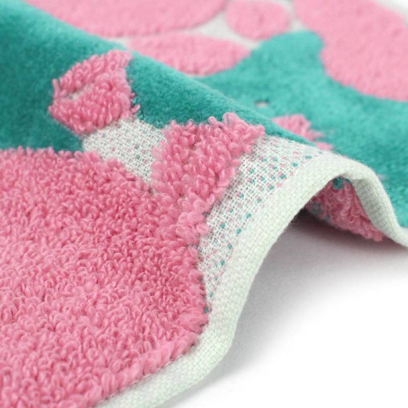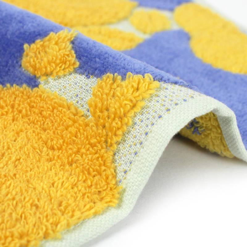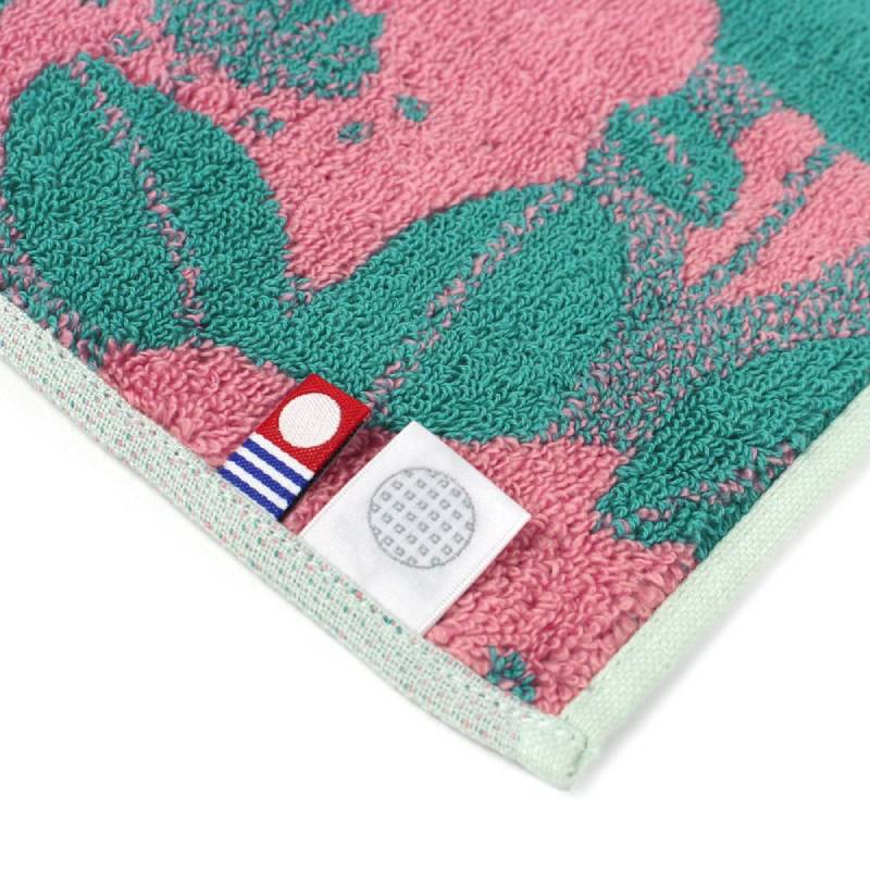 從「伊織毛巾設計大賞」中脫穎而出,此系列為神奈川縣的設計師‧北村有莉設計的「逸山茶」,柔和的曲線與配色十分有魅力。使用柔軟的無撚絲製成,利用毛圈與平織法交錯,呈現立體感的視覺與手感。